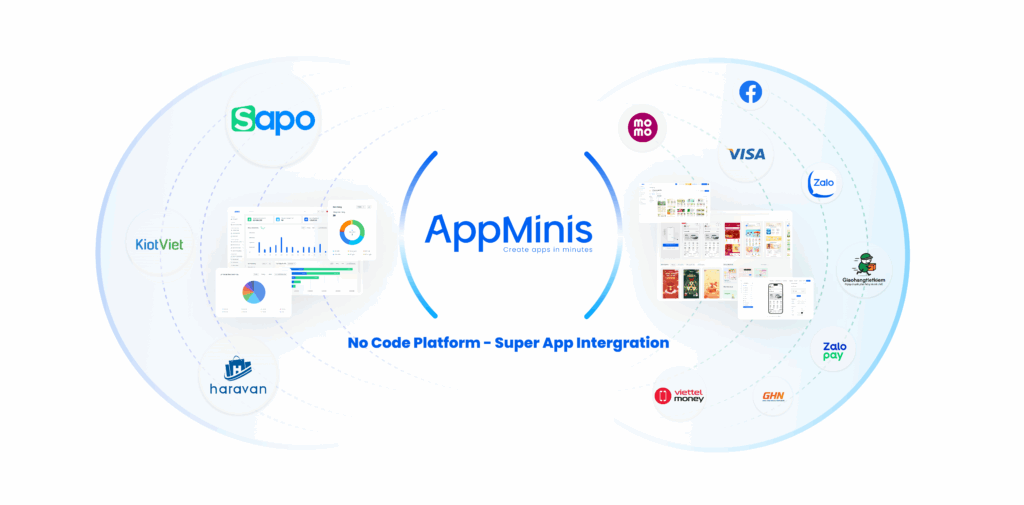 AppMinis không chỉ giúp bạn tạo ứng dụng nhanh chóng, mà còn kết nối trực tiếp với các nền tảng quản lý hàng đầu như Sapo, Haravan, KiotViet, Odoo, Shopify, WordPress,...