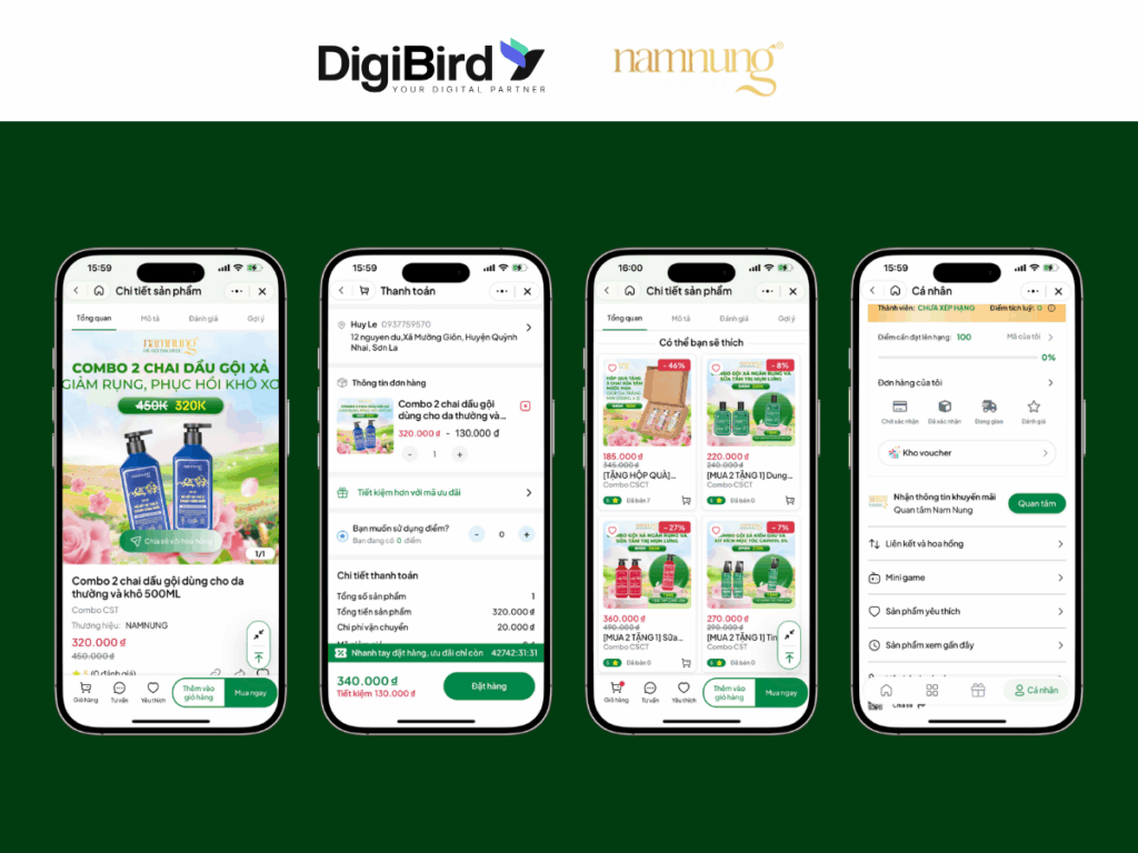 DigiBird tự hào là đối tác triển khai Zalo Mini App Nam Nung, giúp thương hiệu tối ưu hóa E-commerce bán lẻ và xây dựng hệ thống bán hàng số hóa. Với kinh nghiệm triển khai các dự án Mini App đa dạng từ bán lẻ, giáo dục, thời trang đến du lịch… DigiBird đã chứng minh khả năng thiết kế giải pháp phù hợp với từng doanh nghiệp và từng ngành nghề đặc thù khác nhau.